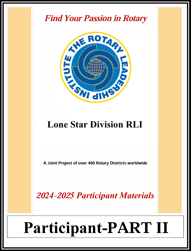 As Rotarians, you each lead in various ways - whether in your community, your profession, or your everyday life. At Lone Star RLI, our mission is to equip you with the tools and skills needed to excel as a club member, club leader, district-level leader and even in your profession.